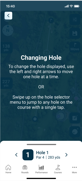 Alternatively, swipe up on the hole selector at the bottom of the screen to display all holes at the course.
